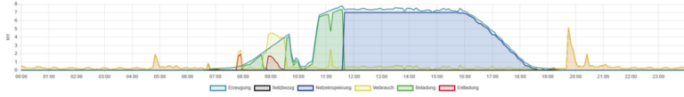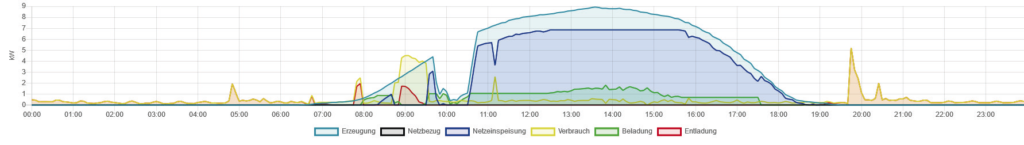 Unsere App ermöglicht es Ihnen, die Beladung Ihrer Stromspeicher intelligent zu steuern, um die Energieerzeugung mit dem Verbrauch in Einklang zu bringen. Ein klarer Vorteil der Schwellwertsteuerung ist die Verhinderung von Energieverlusten durch die Abregelung Ihrer PV-Anlage, besonders in Zeiten hoher Leistungserzeugung. In unserem Beispielbild sehen Sie, wie die Beladung zwischen 13 und 15 Uhr optimiert wird, um den maximalen Nutzen aus Ihrer Photovoltaikanlage zu ziehen.