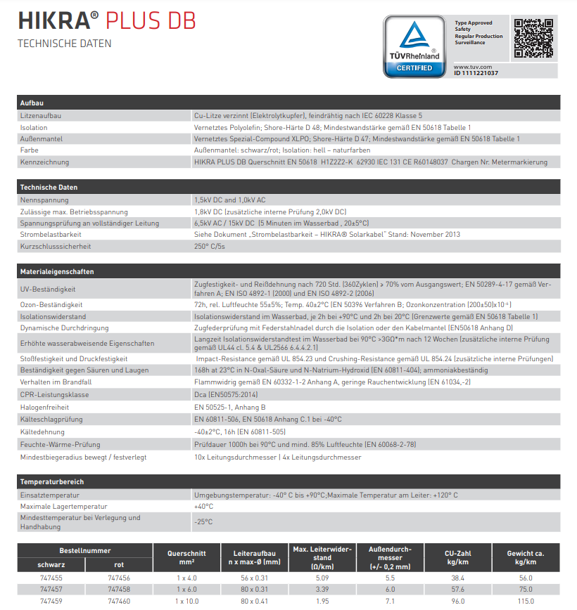 • Maximaltemperatur am Leiter: +120Grad