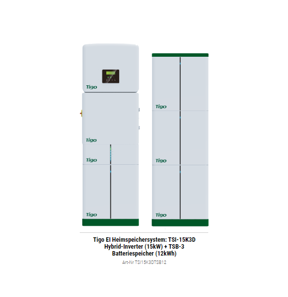 Tigo EI Heimspeichersystem: TSI-15K3D Hybrid-Inverter (15kW) + TSB-15 Batteriespeicher (12kWh)